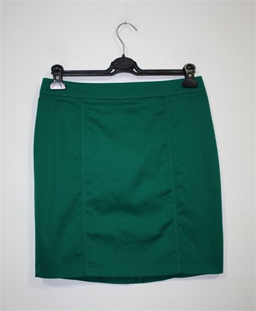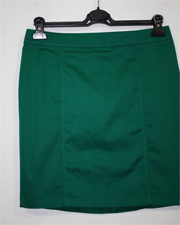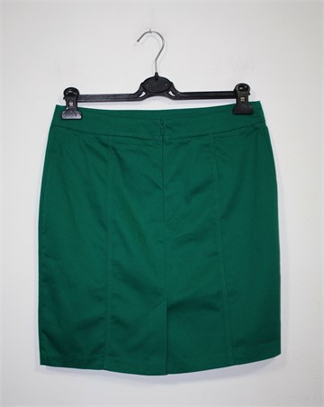 Yessica (C&A) suknja tamnije zelene boje. Stražnji cif i kopčica, mali stražnji rasporak. Ukrasni prošivi sa prednje i stražnje strane, blago rastezljiva pa se lijepo prilagođava tijelu. Materijal je kao tanji traper, čvrst ali lagan.