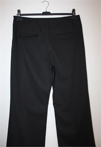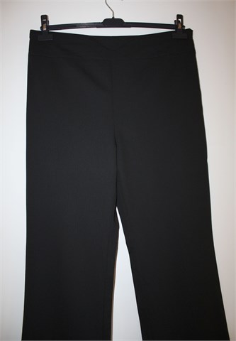 Yessica (C&A) trudničke hlače crne boje sa diskretnim prugama. Sa prednje strane pasice (u sami gornji rub) ušivena je gumica - širina se regulira bočno (gumbić i gumica sa rupicama za gumbić). Mogu biti i ne trudničke (nemaju nigdje oznaku da su trudničke) ali zbog regulacije širine i dubokog modela su super udobne i prilagodljive.