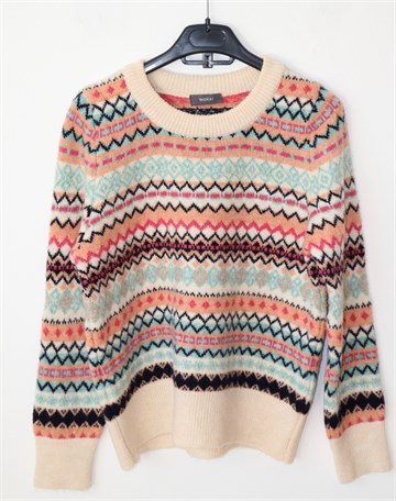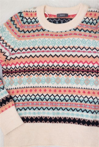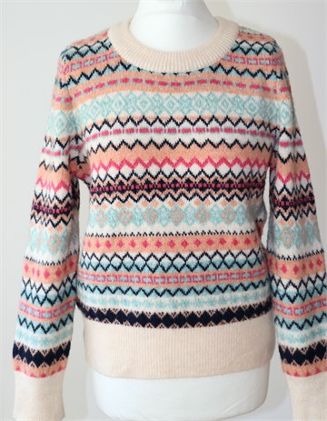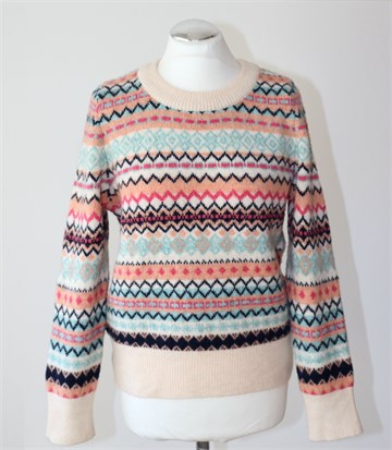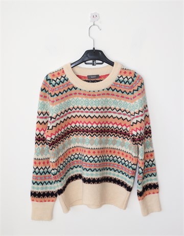 Yessica (C&A) vesta/pulover sa dugim rukavima, šareni uzorak (boje i uzorak vidljivi na slikama). Deblje pletivo, mucasto i rastezljivo.