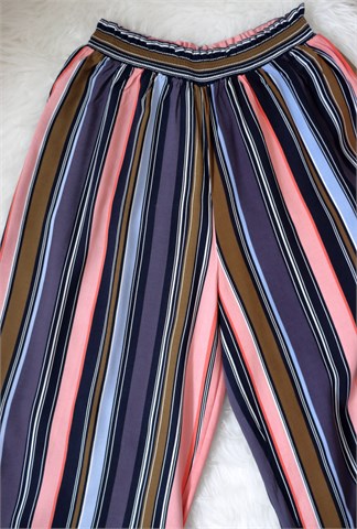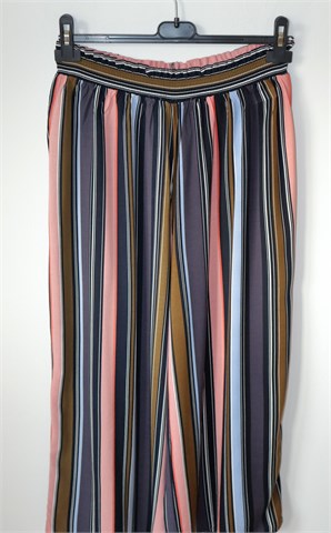 Yessica (C&A) šarene prugaste hlače sa širokim nogavicama (poluduge - vidjeti mjeru za dužinu). U struku prošivena sa gumicama (prilagodljiva širina - vidjeti mjere). Tanke, lagane i prozračne.