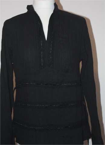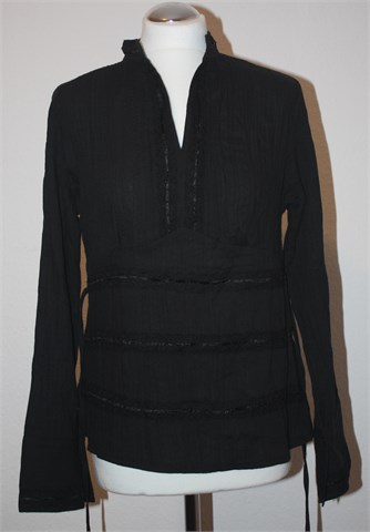 Yimaneili košulja crne boje sa dugim rukavima. Bočni cif i vezanje u struku. Detalji od čipke i satenskih trakica. Lagan, mekan i blago zgužvan materijal (jednostavna za održavanje i ne gužva se).