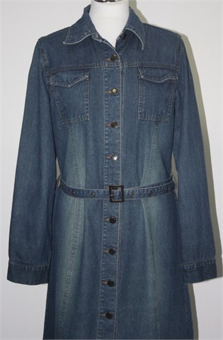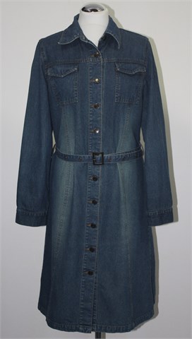Young Classic vintage haljina od trapera sa dugim rukavima. Prednje kopčanje cijelom dužinom, džepići na prsima. U struku remen. Mjestimično ispranog i iscufanog izgleda.