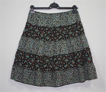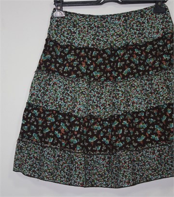 Young Dimension suknja tamno smeđe boje sa cvjetnim printom (boje i uzorci kao na slikama). Gumica u struku, podstavljena pamučnom podstavom. Tanja i lagana.