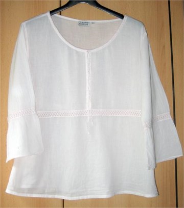 Vrlo prozračna ljetna košuljica sa poludugim rukavima. Blago prozirna i vrlo malo rastezljiva. Vezica oko ovratnika, čipkica na rukavićima i preko sredine košuljice.