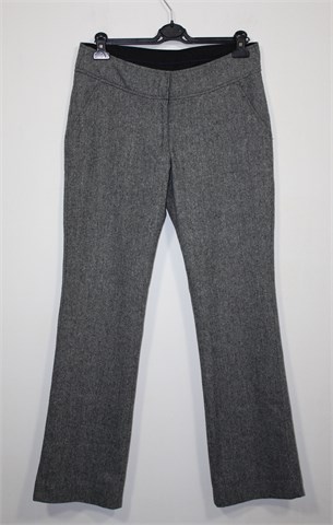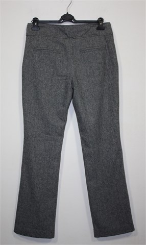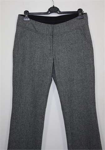 Zabaione zimske hlače prošarano crno-bijele boje (djeluju sivo). Prednji cif i kopčanje, prednji bočni džepovi (stražnji ukrasni/lažni). Podstavljene do cca pola dužine. Tople i mekane.