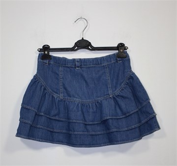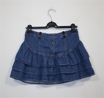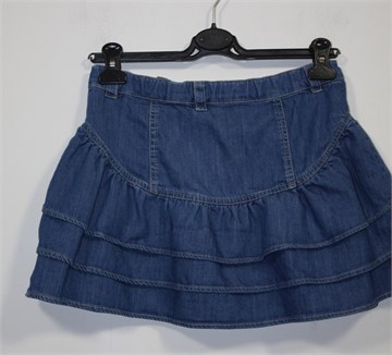 Zara Kids traper suknja sa volančićima. Prednje kopčanje sa drukerima, pasica za remen (prednje ušice od umjetne kože). Mekan i kvalitetan pamuk. Regulacija širine unutar pasice (gumice i gumbići za određivanje širine).