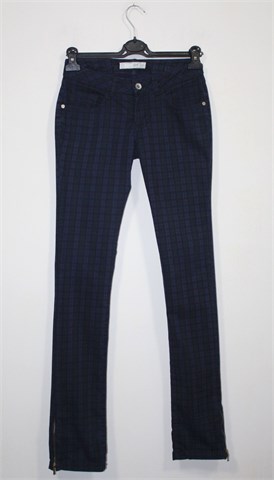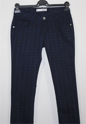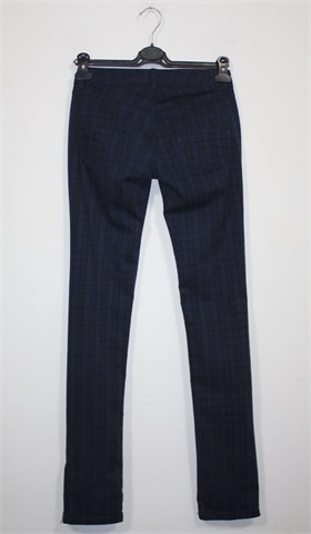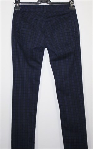 Zara TRF hlače tamno plavo-crne boje (mjestimično blago ispranog izgleda) sa uzorkom (vidljivo na slikama). Prednji cif i kopčanje, pasica za remen. Prednji i stražnji klasični džepovi. Sa vanjske strane nogavica cif. Blago rastezljive.