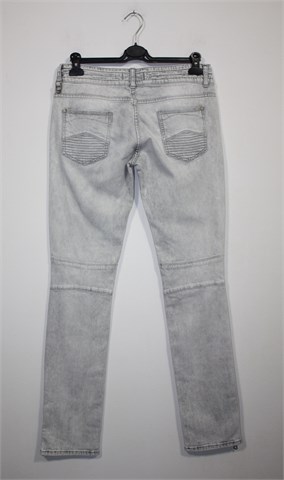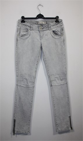 Zara TRF traper hlače, izblijeđeno svijetlo sive boje. Prednji cif i kopčanje, pasica za remen. Prednji i stražnji džepovi, cifovi sa vanjske strane dna nogavica. Niži struk, blago rastezljive.