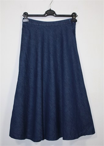 Zara Woman dugačka suknja od tanjeg i mekanog trapera, tamnije plave boje. Bočni cif, blago rastezljiva.