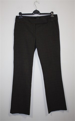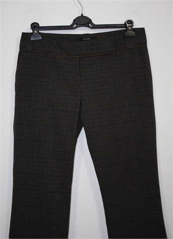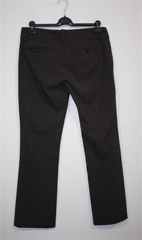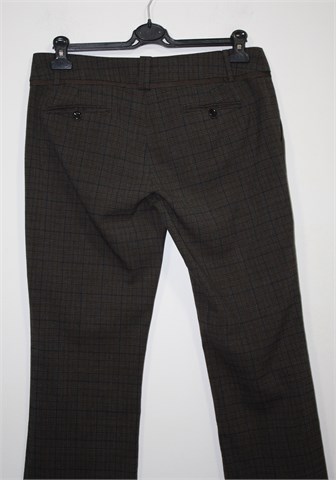 Zara basic hlače sivo-smeđe boje s uzorkom (vidljivo na slici). Prednji cif i kopčanje, pasica za remen. Prednji bočni, stražnji skriveni džepovi sa gumbom. Blago rastezljive.