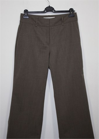 Zara Basic hlače prošarano smeđe-bež boje, materijal je tanji i glatki štof. Prednji cif i kopčanje, pasica za remen. Prednji bočni, stražnji skriveni džepovi (još uvijek zašiveni).