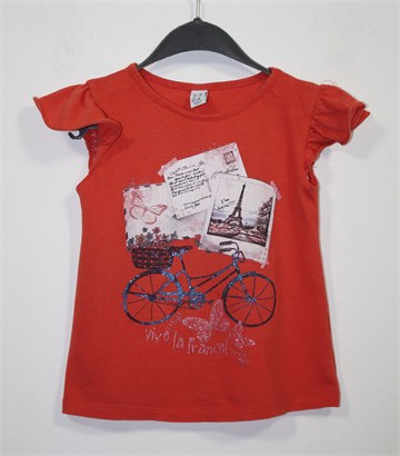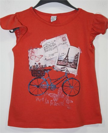Zara Kids majica sa malim rukavićima, tamnije narančaste boje sa prednjim printom. Mekana i rastezljiva.