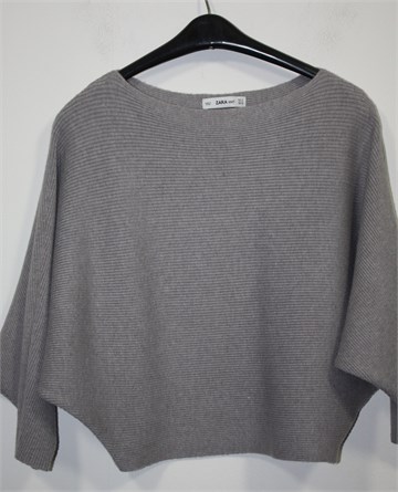 Zara knit cropped vesta sive boje sa širim, poludugim rukavima. Pletivo je rebrasto, mekano i vrlo rastezljivo.
