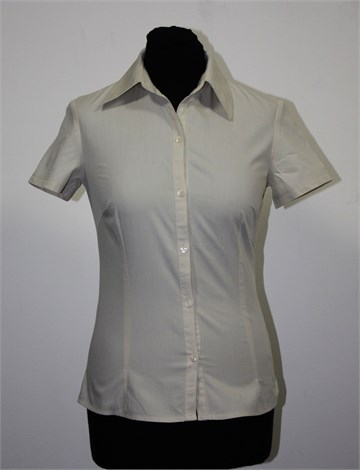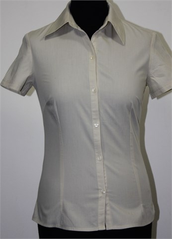 Zara Basic košulja sa kratkim rukavima, svijetlo bež boje. Prednje kopčanje, strukirana. Čvrst i nerastezljiv pamuk.