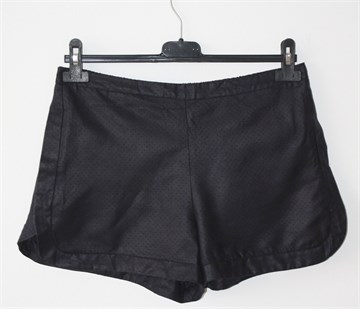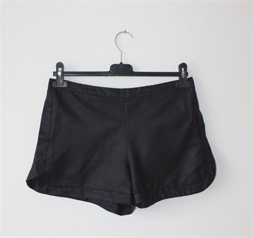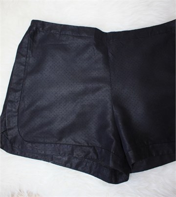 Zara Basic kratke hlače tamno plave boje (materijal djeluje kao imitacija kože), rupičasti uzorak na materijalu. Prednji bočni džepovi, stražnji ukrasni džepić sa cifom. Sa stražnje strane pasice je gumica pa je širina dosta prilagodljiva (vidjeti mjere).