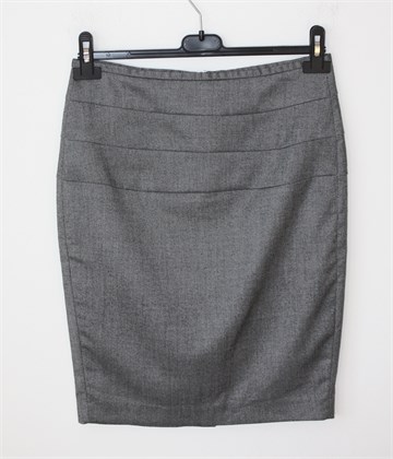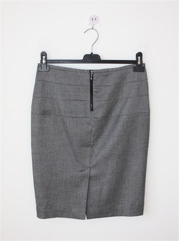 Zara Basic suknja crno-bijele boje (sitan uzorak na materijalu - vidljivo na slikama). Stražnji cif i rasporak, podstavljena. Blago rastezljiva.