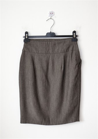 Zara Basic suknja prošarano smeđe-bež boje (vidljivo na slikama). Prednji bočni džepovi, bočni cif. Podstavljena, nije rastezljiva.