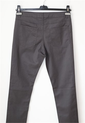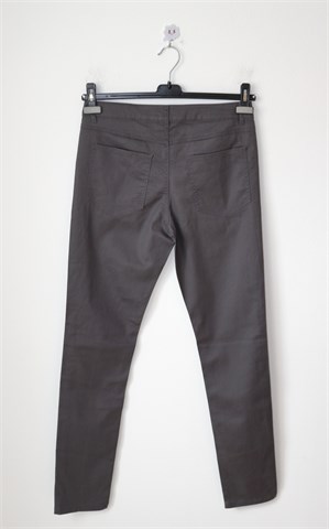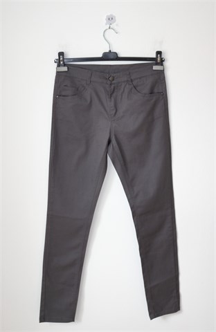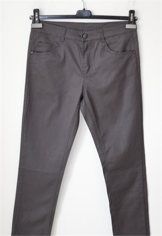 Zeeman traper hlače sive boje, vanjski sloj djeluje blago navoskano. Prednji cif i kopčanje, pasica za remen. Prednji i stražnji džepovi, dublji model (vidjeti mjere). Rastezljive.