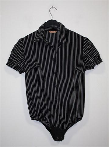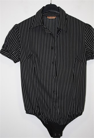 Zephirus košulja-body sa kratkim rukavima, crne boje sa bijelim prugama. Prednje kopčanje, kopčanje sa drukerima između nogu. Prednji i stražnji ušitci (blago strukirana). Malo rastezljiva.
