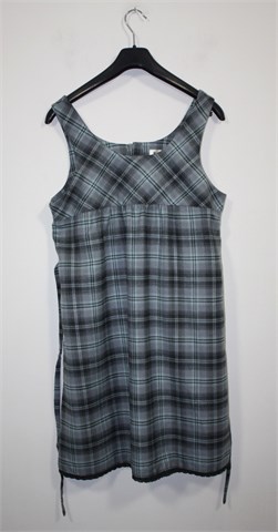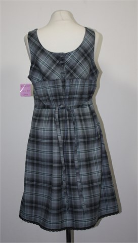 a.i.n. haljina/tunika bez rukava, sivo-plave boje. Mjestimično utkane srebrne niti pa je blago šljokava. Stražnji gumbići i bočne trake za vezanje, ukrasna heklana traka na dnu haljine/tunike. Dupli materijal u gornjem dijelu, mekana i toplija.
